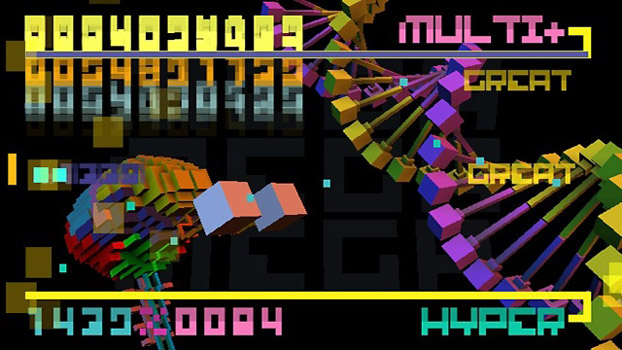 While there generally is no story in the actual game, the story included in the online manual describes Bit.Trip Beat as being like Captain EO told with rave music and a non-homosexual protagonist. The main character (which is represented by a thin Pong paddle) is some sort of psychonaut that travels the galaxy in an effort to spread rhythm throughout outer space. Even though the story is greatly lacking in this game, it’s still a hell of a lot more in-depth than Rez’s story (which I still don’t even know or care about to this day).