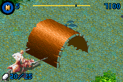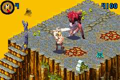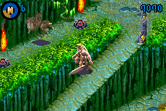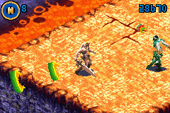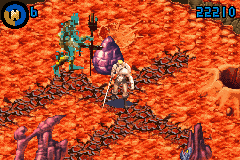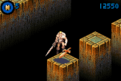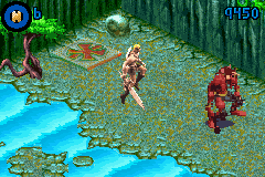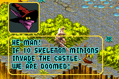 There is one particular problem compounding the difficulty of the game from here on out, which becomes noticeable only because the missions are no longer tutorial-level simple and require performing twitch-based actions beyond the capacity of a table grape. Simply put, the controls are impossible. Allow me to clarify that statement: there is absolutely nothing wrong with the button commands themselves. They are extremely standard: B-button = standard sword swing, A-button = jump, L-button = run, R-button = block, A + B = jump attack, hold B = strong sweeping attack. Those are all fine. The problem is when you push those buttons in an effort to execute your attack/leap/block, the results are practically random. Timing, placement, orientation, landing, and aiming are all irrelevant in the land of Eternia; you may as well just close your eyes, mash buttons, and pray the game decides to have mercy on your soul. Even after a couple hours of playing the game, the controls always feel clunky and unreliable, no matter how many times you encounter the same formulaic enemy or platform jump. To say that controlling He-Man is frustrating would be an understatement. It gets to a "punch-a-fetus-in-utero" level of aggravation once the hit-and-run enemies show up.