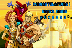 After the Drake & Josh review was released, I was approached about doing this game for the next review. My anal sphincter clenched involuntarily at the thought of reviewing another syndicated-material game back-to-back. Although it was promising that many reputable gaming sites actually reviewed it, it was not so promising that they all seemed to agree it was just another inconsequential cartridge promoting the cause of free market capitalism. He-Man: Power of Grayskull had a release date that coincided with the 2002-2004 remake of the original 1983 He-Man animated series. As far as I can tell, the game is just another tie-in product alongside all the Mattel action figures that were meant for a very narrow market demographic of pre-teen boys that watched Cartoon Network, none of whom were even born when the original He-Man series aired. As a result, there is no "nostalgia" factor to this game, unless you were a pre-teen in 1983... in which case you would now be approximately 35 years old and probably not dabbling around with shitty Gameboy Advance games. For the record, let it be known that my knowledge of "Masters of the Universe" lore does not extend beyond Robot Chicken's lampooning of the franchise.