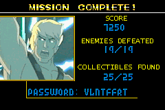Speaking of which, the game encourages you to "collect all the crystals" in each standard mission. If you do, you get to play a speed-run minigame at the end as a chance to get an extra life. What puzzles me is that the game takes such great pains to track your mission progress, enemies killed, and crystals collected through its password system, but you gain nothing for doing so. Even after beating the game with full completion, there is no special achievement, no special ending, no unlockables. The game has zero replayability, period.