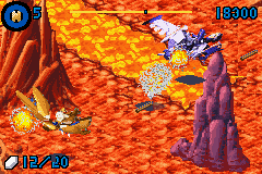 Mission 3 grants you a respite with a Shoot 'Em Up-style scroller with you riding Battle Cat and firing lasers. It's little more than a bonus level that gives you the opportunity to get an extra life if you collect all the crystals. It's not difficult at all despite the damage you take from running into obstacles. Later on in the game, there are 2 other Missions that involve this same shmup format, and are just as easy (if not easier) since you end up flying on a giant dragonfly thing.